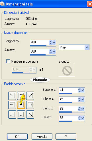 Immagine>Dimensione tela, 700 x 500 pixels, e clicca sulla mattonella centrale per distribuire lo spazio.