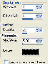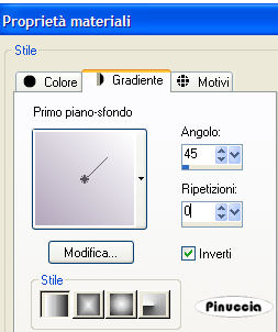 qui puoi trovare qualche risposta ai tuoi dubbi. Se l'argomento che ti interessa non è presente, ti prego di segnalarmelo. Occorrente: Materiale qui Apri una nuova immagine trasparente 500 x 400 pixels. Imposta il colore di primo piano con il bianco e il colore di sfondo con un colore preso dalle immagini. Io ho scelto un colore lilla dal tube del nastro: #b1a6bb. Passa il colore di primo piano a Gradiente di primo piano/sfondo, stile lineare: ![]() Apri l'immagine Sexy Tattoo e vai a Modifica>Copia. Torna al tuo lavoro e vai a Modifica>Incolla>Incolla come nuovo livello. Abbassa l'opacità di questo livello al 50%. Apri il tube SexyTattoo e vai a Modifica>Copia. Torna al tuo lavoro e vai a Modifica>Incolla>Incolla come nuovo livello. Immagine>Rifletti. Sposta il tube sul lato destro, in modo che sia correttamente appoggiato al bordo.Apri il tube ribbonline e vai a Modifica>Copia. Torna al tuo lavoro e vai a Modifica>Incolla>Incolla come nuovo livello. Effetti>Effetti 3D>Sfalsa ombra, con i seguenti settaggi, colore nero: ![]() Apri il tube Gedichtje e vai a Modifica>Copia. Torna al tuo lavoro e vai a Modifica>Incolla>Incolla come nuovo livello. Posiziona il tube come preferisci.Aggiungi un testo alla tag. Io ho scelto il font Artists Script. Effetti>Effetti 3D>Sfalsa ombra, con i seguenti settaggi: ![]() Aggiungi il tuo nome o il tuo watermark. Immagine>Aggiungi bordatura, 4 pixels, simmetriche, con un colore qualsiasi purchè non presente nell'immagine. Seleziona il bordo con la bacchetta magica ![]() e riempilo con il gradiente.![]() Se hai problemi o dubbi, o trovi un link non funzionante, o anche soltanto per un saluto, scrivimi. 5 Marzo 2007 |