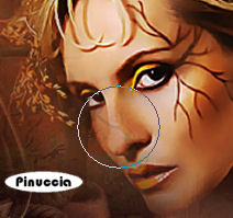 facendo attenzione a posizionarti sui livelli corretti, cancella dal viso della donna i segni delle immagini di sfondo.