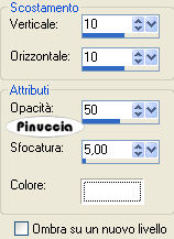23. Effetti>Effetti 3D>Sfalsa ombra, con i seguenti settaggi, colore bianco.