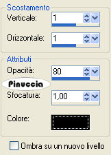 32. Effetti>Effetti 3D>sfalsa ombra, con i seguenti settaggi, colore nero.