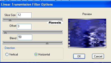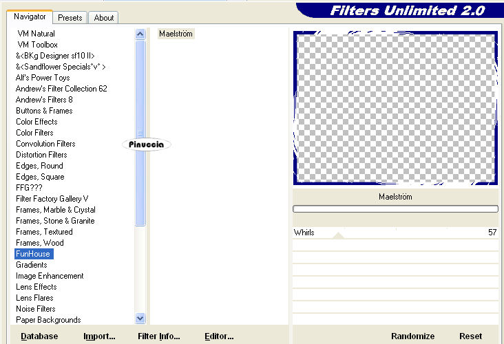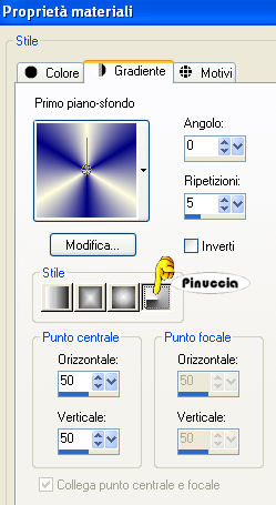 qui puoi trovare qualche risposta ai tuoi dubbi. Se l'argomento che ti interessa non è presente, ti prego di segnalarmelo. Questo tutorial è stato scritto e tradotto con PSP X, ma può essere eseguito anche con le altre versioni di PSP. Il copyright del tutorial appartiene all'autrice. Occorrente: Materiale qui Rispetta il lavoro degli autori, non rimuovere il copyright e non cambiare il nome dei tubes. Filtri: Filters Unlimited 2.0 qui Alien Skin Xenofex 2 qui Xero - Fritillary qui Funhouse qui DSB Flux qui I filtri Funhouse si posso usare importati in Filters Unlimited. Come fare vedi qui. Funzionano anche da soli. Animation Shop qui 1. Apri tutto il materiale in PSP. Duplica i tubes usando sulla tastiera la combinazione di tasti shift(maiuscola)+D e chiudi gli originali. 2. Apri una nuova immagine trasparente 600 x 450 pixels. 3. Imposta il colore di primo piano con #fffedf, e il colore di sfondo con #000080. 4. Riempi l'immagine trasparente con il colore di sfondo.5. Apri il tube "@-misted dove" e vai a Modifica>Copia. Torna al tuo lavoro e vai a Modifica>Incolla come nuovo livello. Immagine>Ridimensiona, 2 volte all'80%, tutti i livelli non selezionato. Cambia la modalità di miscelatura di questo livello in Luce diffusa. Sposta il tube in alto a destra.6. Apri il tube "E-Wiccan Creed" e vai a Modifica>Copia. Torna al tuo lavoro e vai a Modifica>Incolla come nuovo livello. 7. Immagine>Ruota per gradi - 20 gradi a sinistra: ![]() Cambia la modalità di miscelatura di questo livello in Luce diffusa. Spostalo in alto, al centro. 8. Apri il tube "Ketel" e vai a Modifica>copia. Torna al tuo lavoro e vai a Modifica>Incolla come nuovo livello. Cambia la modalità di miscelatura di questo livello in Luce Diffusa. Sposta il tube in alto a sinistra.![]() 9. Livelli>Nuovo livello raster. Riempi il livello con il colore di primo piano.Abbassa l'opacità di questo livello al 24%. 10. Apri il tube "dd_celestialMancopy" e vai a Modifica>Copia. Torna al tuo lavoro e vai a Modifica>Incolla come nuovo livello. Sposta il tube a sinistra.Cambia la modalità di miscelatura di questo livello in Sovrapponi, e abbassa l'opacità al 60%. 11. Attiva lo strumento Gomma ![]() e cancella le tracce dei tubes precedenti dalla figura del mago. Fai attenzione a posizionarti sul livello del tube che devi cancellare: ![]() 12. Apri l'immagine "Achtergrond" e vai a Modifica>Copia. Torna al tuo lavoro e vai a Modifica>Incolla come nuovo livello. Immagine>Ridimensiona, 2 volte all'80%, tutti i livelli non selezionato. Cambia la modalità di miscelatura di questo livello in Luminanza (esistente), e abbassa l'opacità al 40%. Sposta l'immagine in alto a destra.13. Apri il tube "beyondtheroses" e vai a Modifica>Copia. Torna al tuo lavoro e vai a Modifica>Incolla come nuovo livello. Spostalo in basso a destra, in modo che metà del tube non sia visibile (vedi il mio esempio).Cambia la modalità di miscelatura di questo livello in Luminanza (esistente). 14. Apri il tube "unicorns", e vai a Modifica>Copia. Torna al tuo lavoro e vai a Modifica>Incolla come nuovo livello. Spostalo a destra sopra il tube della donna.Abbassa l'opacità di questo livello al 60%. 15. Apri il tube "BadDream", e vai a Modifica>Copia. Torna al tuo lavoro e vai a Modifica>Incolla come nuovo livello. Spostalo in basso a destra.Cambia la modalità di miscelatura di questo livello in Luminanza (esistente). 16. Attiva nuovamente lo strumento Gomma ![]() Cancella dal tube della finestra quello che disturba i livelli soprastanti ![]() Quindi, facendo attenzione a posizionarti sui livelli corretti, cancella le tracce della rosa e le tracce degli unicorni dalla mano della donna. ![]() A questo punto, attiva il livello della donna e cancella con cautela la parte di tube che copre le teste degli unicorni. ![]() Per finire, attiva nuovamente il livello della finestra e "pulisci" la parte che copre il livello dell'occhio. ![]() Dovresti avere qualcosa di simile: ![]() 17. Livelli>Unisci>Unisci tutto. 18. Immagine>Aggiungi bordatura, 1 pixel, simmetriche, con il colore di sfondo. 19. Immagine>Aggiungi bordatura, 10 pixels, simmetriche, con un colore qualsiasi, purchè non presente nell'immagine. 20. Seleziona questo bordo con la bacchetta magica ![]() ![]() 21. Passa il colore di primo piano a Gradiente di primo piano/sfondo, con i seguenti settaggi: ![]() Riempi la selezione con il gradiente.22. Effetti>Plugins>DSB Flux - Linear Transmission, con i seguenti settaggi: ![]() 23. Ripeti l'Effetto Linear Transmission, questa volta selezionando Vertical. 24. Effetti>Plugins>Xero - Fritillary, con i settaggi standard. ![]() 25. Effetti>Effetti di bordo>Aumenta di più. 26. Livelli>Nuovo livello raster. Riempi con il colore di sfondo.Abbassa l'opacità di questo livello al 60%. 27. Effetti>Plugins>Filters Unlimited - Funhouse - Maelstrom, con i settaggi standard. ![]() 28. Selezione>Deseleziona. 29. Immagine>Aggiungi bordatura, 2 pixels, simmetriche, con il colore di sfondo. 30. Aggiungi il tuo nome e/o il tuo watermark. 31. Se non vuoi animare il tuo lavoro, salva in formato jpg. 32. Per realizzare l'animazione, prosegui. 33. Attiva lo strumento Selezione a mano libera , da punto a punto, modalità aggiungi:![]() 34. Seleziona i "lampi" bianchi sulle unghie della donna. 35. Mantieni selezionato. 36. Livelli>Duplica e ripeti. Avrai così tre livelli. 37. Attiva il livello inferiore. Effetti>Plugins>Alien Skin Xenofex 2 - Electrify, con i seguenti settaggi: ![]() 38. Attiva il livello centrale. Ripeti l'Effetto Electrify, cliccando una volta su Random Seed. 39. Attiva il livello superiore. Ripeti l'Effetto Electrify, cliccando una volta su Random Seed. 40. Selezione>Deseleziona. 41. Salva in formato psp-image. 42. Apri Animation Shop e apri il file che hai appena salvato. 43. Come vedrai, il file è composto da tre fotogrammi. 44. Clicca sul primo fotogramma per selezionarlo e vai a Modifica>Seleziona tutto. 45. Animazione>Proprietà fotogramma e imposta la velocità a 