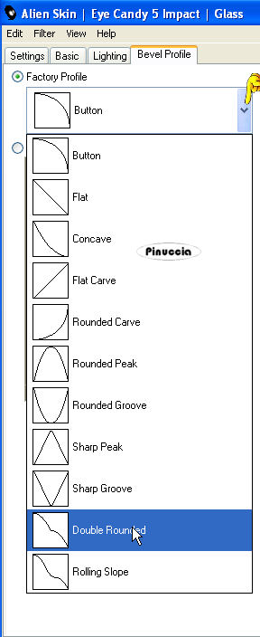 settaggi Bevel Profile: apri il menu e seleziona Double Rounded.