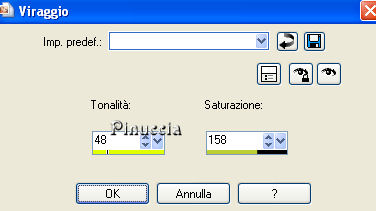 50. Regola>Tonalità e saturazione>Viraggio, con i settaggi precedenti.