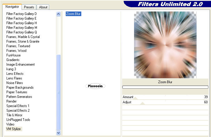 57. Effetti>Plugins>Filters Unlimited 2.0 - VM Stylize - Zoom blur: