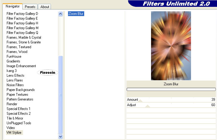 42. Effetti>Plugins>Filters Unlimited - VM Stylize - Zoom blur.