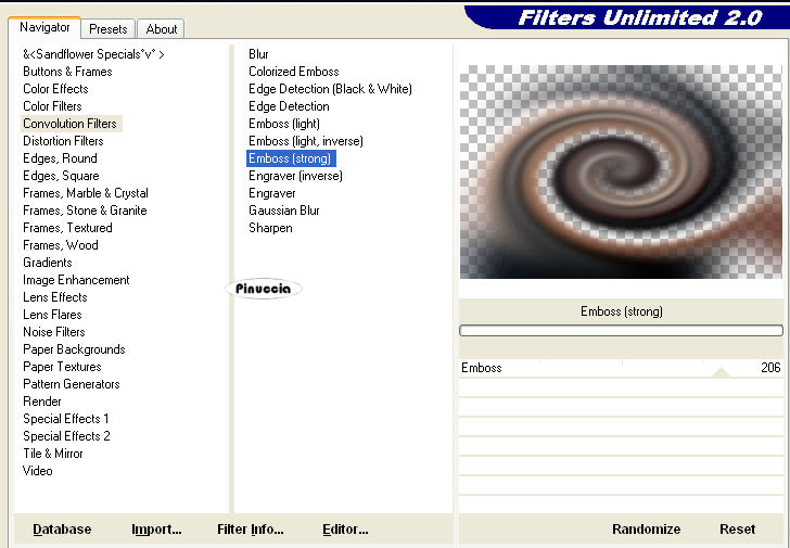 8. Effetti>Plugins>Filters Unlimited 2.0 - convolution Filters - Emboss(strong).
