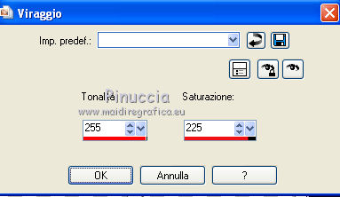 30. Regola>Tonalità e saturazione>Viraggio, con i settaggi precedenti.