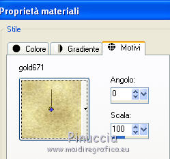Apri la paletta dei materiali e seleziona il motivo oro gold671 che, essendo minimizzato nella tua area di lavoro, troverai nella lista dei motivi disponibili.