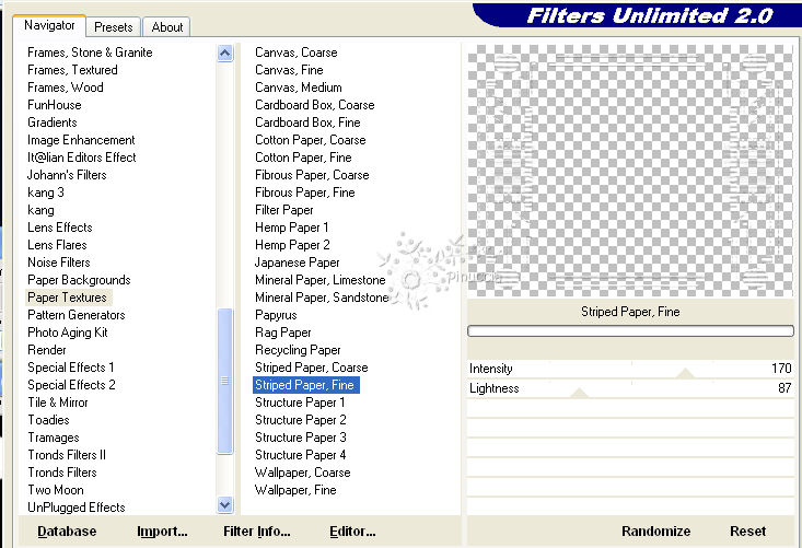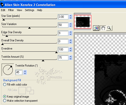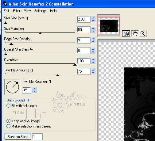 qui puoi trovare qualche risposta ai tuoi dubbi. Se l'argomento che ti interessa non è presente, ti prego di segnalarmelo. Per tradurre questo tutorial ho usato PSP X, ma può essere eseguito anche con le altre versioni di PSP. Questo tutorial è una creazione di ©Bluefay e non può essere copiato su altri siti nè essere offerto per il download. Lo stesso vale per la mia traduzione. Il materiale viene da vari gruppi di condivisione. Il copyright appartiene ai rispettivi autori. Grazie ai creatori dei tubes che mettono a disposizione il loro lavoro in vari gruppi di condivisione. Rispetta il lavoro degli autori, non cambiare il nome del file e non cancellare il watermark. Occorrente: Materiale qui Filtri: Alien Skin Xenofex 2.0 - Constellation qui Filters Unlimited 2.0 qui Ti servirà anche Animation Shop qui ![]() Metti le maschere nella cartella Maschere. 1. Imposta il colore di primo piano con il bianco, e il colore di sfondo con il nero. 2. Apri una nuova immagine trasparente 900 x 700 pixels, e riempila con il colore nero (tasto destro del mouse).3. Livelli>Nuovo livello raster. Riempi il livello con il colore bianco.4. Livelli>Carica/Salva maszchera>Carica maschera da disco. Cerca e carica la maschera mask27: ![]() Livelli>Unisci>Unisci gruppo. 5. Effetti>Plugins>Filters Unlimited 2.0 - Paper Textures - Striped Paper,Fine. ![]() 6. Immagine>Aggiungi bordatura, 2 pixels, simmetriche, con il colore bianco. Immagine>Aggiungi bordatura, 2 pixels, simmetriche, con il colore nero. Immagine>Aggiungi bordatura, 2 pixels, simmetriche, con il colore bianco. 7. Livelli>Innalza livello di sfondo. 8. Selezione>seleziona tutto. Selezione>Modifica>Contrai - 100 pixels. ![]() 9. Livelli>Nuovo livello raster. Riempi la selezione con il colore bianco.10. Selezione>Modifica>Contrai - 2 pixels. Premi sulla tastiera il tasto CANC. 11. Riempi la selezione con il colore nero.12. Selezione>Modifica>Contrai - 2 pixels. Premi sulla tastiera il tasto CANC. 13. Riempi la selezione con il colore bianco.14. Selezione>Modifica>Contrai - 2 pixels. Premi sulla tastiera il tasto CANC. 15. Mantieni selezionato. 16. Livelli>Unisci>Unisci giù. 17. Livelli>Nuovo livello raster. Riempi il livello con il colore bianco.18. Livelli>Nuovo livello raster. Riempi con il colore nero.19. Livelli>Carica/Salva maschera>Carica maschera da disco. Cerca e carica la maschera ©Hummel jutta mask 50.3: ![]() Livelli>Unisci>Unisci gruppo. 20. Selezione>Deseleziona. 21. Effetti>Effetti 3D>Sfalsa ombra, con il colore nero. ![]() 22. Attiva il secondo livello dal basso. Livelli>Unisci>Unisci giù. 23. Attiva il livello superiore. 24. Apri il tube "femmeoretargent Emma 020409". Regola>Tonalità e saturazione>Viraggio. ![]() 25. Modifica>Copia. Torna al tuo lavoro e vai a Modifica>Incolla come nuovo livello. 26. Sposta il tube a destra.27. Apri il tube "montrefglmcleff7". Regola>Tonalità e saturazione>Viraggio. ![]() 28. Modifica>Copia. Torna al tuo lavoro e vai a Modifica>Incolla come nuovo livello. 29. Sposta il tube a sinistra, come nel mio esempio.![]() 30. Effetti>Effetti di bordo>Aumenta. Livelli>Unisci>Unisci giù. 31. Livelli>Duplica, e attiva il livello sottostante dell'originale. 32. Regola>Sfocatura>Sfocatura gaussiana - raggio 30. ![]() 33. Attiva il livello superiore. Livelli>Unisci>Unisci giù. 34. Attiva il livello inferiore. 35. Selezione>Seleziona tutto. Selezione>Modifica>Contrai - 106 pixels. Selezione>Inverti. 36. Attiva il livello superiore. Premi sulla tastiera il tasto CANC. Selezione>Deseleziona. 37. Apri il tube "SE Charms Heart 6" e vai a Modifica>Copia. Torna al tuo lavoro e vai a Modifica>Incolla come nuovo livello. Spostalo un po' più a sinistra.![]() 38. Livelli>Disponi>Sposta giù. 39. Effetti>Effetti di bordo>Aumenta. 40. Aggiungi il tuo nome e/o il tuo watermark su un nuovo livello. 41. Attiva il livello superiore. 42. Immagine>Ridimensiona, a 700 pixels di larghezza. ![]() 43. Regola>Messa a fuoco>Metti a fuoco. 44. Attiva il secondo livello dal basso. 45. Effetti>Plugins>Alien Skin Xenofex 2.0 - Constellation. ![]() 44. Modifica>Copia Unione. Se stai usando PSP X2: Modifica>Copia Speciale>Copia Unione 45. Apri Animation Shop e vai a Modifica>Incolla>Incolla come nuova animazione. 46. Torna in PSP. Modifica>Annulla azione Constellation. Ripeti l'Effetto Constellation, cambiando soltanto Star Size con 3,00. ![]() 47. Modifica>Copia Unione. Torna in Animation Shop e vai a Modifica>Incolla>Incolla dopo il fotogramma corrente. Controlla il risultato cliccando su Visualizza e salva in formato gif.![]() Se hai problemi o dubbi, o trovi un link non funzionante, o anche soltanto per un saluto, scrivimi 27 Giugno 2010 |