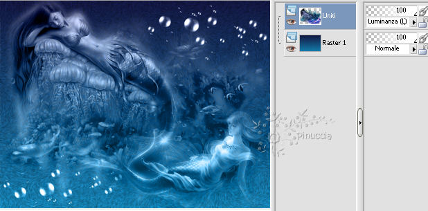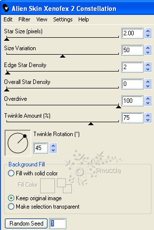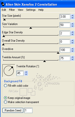 qui puoi trovare qualche risposta ai tuoi dubbi. Se l'argomento che ti interessa non è presente, ti prego di segnalarmelo. Per tradurre questo tutorial ho usato PSP X, ma può essere eseguito anche con le altre versioni di PSP. Questo tutorial è una creazione di ©Bluefay e non può essere copiato su altri siti nè essere offerto per il download. Lo stesso vale per la mia traduzione. Il materiale viene da vari gruppi di condivisione. Il copyright appartiene ai rispettivi autori. Grazie ai creatori dei tubes che mettono a disposizione il loro lavoro in vari gruppi di condivisione. Rispetta il lavoro degli autori, non cambiare il nome del file e non cancellare il watermark. Occorrente: Materiale qui Filtri: Eye Candy 4000 - Swirl qui Alien Skin Xenofex 2.0 - Constellation qui Greg's Factory Output vol. II qui Ti servirà anche Animation Shop qui ![]() 1. Scegli dal tube Karat1843 due colori, imposta il colore chiaro come colore di primo piano (il mio #168ab2), e il colore scuro come colore di sfondo (il mio #141740). 2. Passa il colore di primo piano a Gradiente. ![]() 3. Apri una nuova immagine trasparente 650 x 500 pixels, e riempila con il gradiente.4. Effetti>Plugins>Eye Candy 4000 - Swirl. ![]() 5. Apri il tube Karat1843 e vai a Modifica>Copia. Torna al tuo lavoro e vai a Modifica>Incolla come nuovo livello. 6. Immagine>Ridimensiona, al 110%, tutti i livelli non selezionato. ![]() 7. Apri il tube Bubbles004 Mdh, e vai a Modifica>Copia. Torna al tuo lavoro e vai a Modifica>Incolla come nuovo livello. Sposta il tube in basso a sinistra, come nel mio esempio.8. Livelli>Duplica. 9. Immagine>Capovolgi. Sposta questo tube in alto a destra, come nel mio esempio.![]() 10. Apri il tube "misted by Sorensen designs - aquatic maid" e vai a Modifica>Copia. Torna al tuo lavoro e vai a Modifica>Incolla come nuovo livello. Sposta questo tube in alto a sinistra.11. Apri il tube Mis(6) e vai a Modifica>Copia. Torna al tuo lavoro e vai a Modifica>Incolla come nuovo livello. Spostalo in basso a destra, come nel mio esempio.![]() 12. Chiudi il livello inferiore, rimanendo posizionato sul livello superiore. ![]() 13. Livelli>Unisci>Unisci visibile. 14. Riapri il livello inferiore, e cambia la modalità di miscelatura del livello superiore (Uniti) in Luminanza (Esistente). ![]() 15. Immagine>Aggiungi bordatura, 2 pixels, simmetriche, con il colore bianco. ![]() 16. Seleziona il bordo bianco con la bacchetta magica ![]() Riempi la selezione con il colore chiaro.Mantieni selezionato. 17. Effetti>Plugins>Greg's Factory Output Vol.II - Pool Shadow. ![]() 18. Selezione>Deseleziona. 19. Apri il tube "bluefay fairydust" e vai a Modifica>Copia. Torna al tuo lavoro e vai a Modifica>Incolla come nuovo livello. 20. Effetti>Plugins>Alien Skin Xenofex 2.0 - Constellation. ![]() 21. Modifica>Copia Unione. Apri Animation Shop e vai a Modifica>Incolla>Incolla come nuova animazione. 22. Torna in PSP. Modifica>Annulla azione Constellation. Ripeti l'Effetto Constellation cambiando soltanto Star Size con 3,00. ![]() Modifica>Seleziona tutto. Animazione>Proprietà fotogramma, e imposta la velocità a 8. Controlla il risultato cliccando su Visualizza e salva in formato gif.![]() Se hai problemi o dubbi, o trovi un link non funzionante, o anche soltanto per un saluto, scrivimi 26 Giugno 2010 |