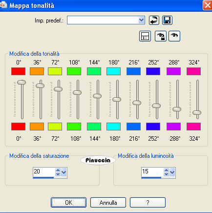 12. Regola>Tonalità e Saturazione>Mappa Tonalità.