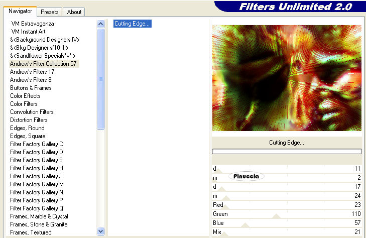 23. Effetti>Plugins>Filters Unlimited - Andrew's Filter Collection 57 - Cutting Edge.