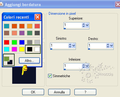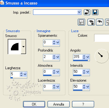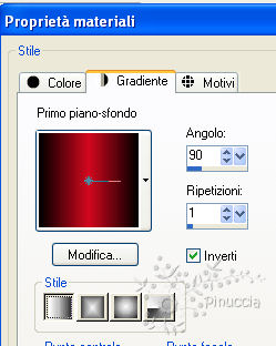 qui puoi trovare qualche risposta ai tuoi dubbi. Se l'argomento che ti interessa non è presente, ti prego di segnalarmelo. Per tradurre questo tutorial ho usato PSP X, ma può essere eseguito anche con le altre versioni di PSP. Questo tutorial è una creazione di ©Bluefay e non può essere copiato su altri siti nè essere offerto per il download. Lo stesso vale per la mia traduzione. Il materiale viene da vari gruppi di condivisione. Il copyright appartiene ai rispettivi autori. Grazie ai creatori dei tubes che mettono a disposizione il loro lavoro in vari gruppi di condivisione. Rispetta il lavoro degli autori, non cambiare il nome del file e non cancellare il watermark. Occorrente: Materiale qui ![]() Metti le trame nella cartella Trame. Apri la tua immagine. Immagine>Ridimensiona, a 400 pixels di altezza. L'immagine fornita con il materiale ha già le corrette dimensioni 2. Scegli un colore brillante dalla tua immagine e impostalo come colore di primo piano (il mio #d5091f). Imposta il colore di sfondo con il nero. 3. Immagine>Aggiungi bordatura, 2 pixels, simmetriche, con il colore nero. Ti ricordo che puoi richiamare i colori impostati nella tua paletta dei materiali. Cliccando con il tasto destro del mouse sulla paletta, ti apparirà la finestra con gli ultimi colori utilizzati. Tra questi, sono fissi il bianco e il nero alla fine della lista e - in basso a sinistra - i colori di primo piano e sfondo che hai impostato prima di eseguire il tutorial. ![]() 4. Immagine>Aggiungi bordatura, 1 pixel, simmetriche, con il colore di primo piano. 5. Immagine>Aggiungi bordatura, 2 pixels, simmetriche, con il colore nero. 6. Passa il colore di primo piano a Gradiente. ![]() 7. Immagine>Aggiungi bordatura, 5 pixels, simmetriche, con il colore bianco. 8. Seleziona questo bordo con la bacchetta magica ,e riempi la selezione con il gradiente.9. Effetti>Effetti 3D>Smusso a incasso. ![]() 10. Selezione>Deseleziona. 11. Cambia i settaggi del gradiente. ![]() 12. Immagine>Aggiungi bordatura, 5 pixels, simmetriche, con il colore bianco. 13. Seleziona questo bordo con la bacchetta magica ,e riempi la selezione con il gradiente.14. Effetti>Effetti 3D>Smusso a incasso. ![]() 15. Selezione>Deseleziona. 16. Immagine>Aggiungi bordatura, 2 pixels, simmetriche, con il colore nero. 17. Immagine>Aggiungi bordatura, 1 pixel, simmetriche, con il colore di primo piano. 18. Immagine>Aggiungi bordatura, 2 pixels, simmetriche, con il colore nero. 19. Immagine>Aggiungi bordatura, 25 pixels, simmetriche, con il colore bianco. 20. Seleziona questo bordo con la bacchetta magica ,e riempi la selezione con il colore di primo piano.21. Effetti>Effetti di trama>Trama - seleziona la trama "11" con i seguenti settaggi. ![]() 22. Selezione>Inverti. Effetti>Effetti 3D>Sfalsa ombra, con il colore nero. ![]() 23. Selezione>Deseleziona. Livelli>Innalza livello di sfondo. 24. Livelli>Nuovo livello raster. Livelli>Disponi>Porta sotto. 25. Immagine>Dimensione tela. ![]() se stai usando un'altra immagine, l'altezza potrebbe essere diversa da quella del tutorial. Accertati soltanto che l'altezza sia la stessa della tua immagine. 26. Riempi il livello con il colore nero.27. Effetti>Effetti di trama>Veneziana, con il colore di primo piano. ![]() 28. Immagine>Aggiungi bordatura, 1 pixel, simmetriche, con il colore nero. 29. Immagine>Aggiungi bordatura, 35 pixels, simmetriche, con il colore bianco. 30. Seleziona questo bordo con la bacchetta magica ,e riempi la selezione con il colore di primo piano.31. Effetti>Effetti di trama>Trama - seleziona la trama "72" con i seguenti settaggi. ![]() 32. Selezione>Inverti. Effetti>Effetti 3D>Sfalsa ombra, con il colore nero. ![]() 33. Selezione>Deseleziona. 34. Immagine>Aggiungi bordatura, 2 pixels, simmetriche, con il colore nero. 35. Immagine>Aggiungi bordatura, 1 pixel, simmetriche, con il colore di primo piano. 36. Immagine>Aggiungi bordatura, 2 pixels, simmetriche, con il colore nero. 37. Cambia nuovamente i settaggi riportando Angolo a 90. ![]() 38. Immagine>Aggiungi bordatura, 5 pixels, simmetriche, con il colore bianco. 39. Seleziona questo bordo con la bacchetta magica ,e riempi la selezione con il gradiente.40. Effetti>Effetti 3D>Smusso a incasso. ![]() 41. Selezione>Deseleziona. 42. Riporta l'angolo del gradiente a 0. ![]() 43. Immagine>Aggiungi bordatura, 5 pixels, simmetriche, con il colore bianco. 44. Seleziona questo bordo con la bacchetta magica ,e riempi la selezione con il gradiente.45. Effetti>Effetti 3D>Smusso a incasso. ![]() 46. Immagine>Aggiungi bordatura, 2 pixels, simmetriche, con il colore nero. 47. Immagine>Aggiungi bordatura, 1 pixel, simmetriche, con il colore di primo piano. 48. Immagine>Aggiungi bordatura, 2 pixels, simmetriche, con il colore nero. 49. Aggiungi il tuo nome e/o il tuo watermark e salva in formato jpg. I tubes usati per questi esempi sono di Julia Caldas e Devilninside. ![]() ![]() ![]() Se hai problemi o dubbi, o trovi un link non funzionante, o anche soltanto per un saluto, scrivimi 1 Luglio 2010 |