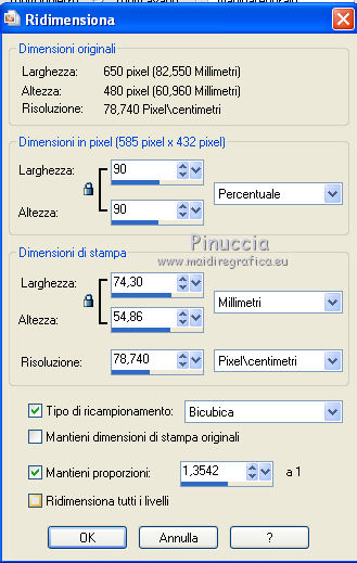 37. Immagine>Ridimensiona, al 90%, tutti i livelli non selezionato.