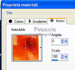 1. Passa il colore di primo piano a Motivi e seleziona il motivo Firebubble con i seguenti settaggi.