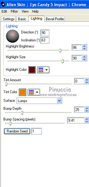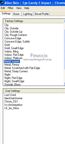 6. Effetti>Plugins>Alien Skin Eye Candy 5 Impact - Chrome, con i seguenti settaggi.