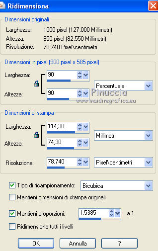 44. Immagine>Ridimensiona, al 90%, tutti i livelli non selezionato.