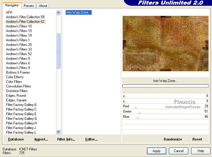 9. Effetti>Plugins>Filters Unlimited 2.0 - Andrew's Filter Collection 62 - Into Warp Zone.