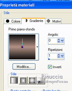 qui puoi trovare qualche risposta ai tuoi dubbi. Se l'argomento che ti interessa non è presente, ti prego di segnalarmelo. Per tradurre questo tutorial ho usato PSP X, ma può essere eseguito anche con le altre versioni di PSP. Questo tutorial è una creazione di ©Bluefay e non può essere copiato su altri siti nè essere offerto per il download. Lo stesso vale per la mia traduzione. Il materiale viene da vari gruppi di condivisione. Il copyright appartiene ai rispettivi autori. Grazie ai creatori dei tubes che mettono a disposizione il loro lavoro in vari gruppi di condivisione. Rispetta il lavoro degli autori, non cambiare il nome del file e non cancellare il watermark. Occorrente: Materiale qui Filtri: Adjust - Variation qui FM Tile Tools - Blend Emboss qui Alien Skin Xenofex 2.0 - Constellation qui Filters Unlimited 2.0 qui Filter Factory Gallery G qui I filtri Factory Gallery per essere usati devono prima essere convertiti. Come fare vedi qui Si usano importandoli in Filters Unlimited (come fare vedi qui) ma possono funzionare anche da soli Ti servirà anche Animation Shop qui ![]() Apri tutto il materiale in PSP, comprese le maschere. 1. Scegli due colori dal tube Isharimal Awakening. 2. Imposta il colore di primo piano con il colore chiaro (il mio #b49185), e il colore di sfondo con il colore scuro (il mio #0f0f0f). 3. Apri una nuova immagine trasparente 650 x 450 pixels, e riempila con il colore chiaro di primo piano.4. Effetti>Effetti di trama>Veneziana. ![]() 5. Apri il tube "Marif 2006 octobre misted fleurs 0109" e vai a Modifica>Copia. Torna al tuo lavoro e vai a Modifica>Incolla come nuovo livello. Sposta il tube a sinistra, come nel mio esempio.![]() 6. Livelli>Duplica. Immagine>Rifletti. Livelli>Unisci>Unisci giù. 7. Effetti>Plugins>FM Tile Tools - Blend Emboss, con i settaggi standard - 2 volte. ![]() 8. Livelli>Nuovo livello raster. Attiva lo strumento Selezione ,clicca sull'icona Selezione personalizzata ![]() e imposta i seguenti settaggi: ![]() Riempi la selezione con il colore scuro di sfondo.9. Selezione>Modifica>Contrai - 2 pixels. Premi sulla tastiera il tasto CANC. Mantieni selezionato. 10. Livelli>Nuovo livello raster. Riempi con il colore scuro di sfondo.11. Effetti>Plugins>Filter Factory Gallery G - Panel Stripes: ![]() 12. Selezione>Deseleziona. 13. Abbassa l'opacità di questo livello al 50%. 14. Effetti>Effetti di bordo>Aumenta. 15. Livelli>Unisci>Unisci giù. 16. Effetti>Effetti 3D>Sfalsa ombra, con il colore nero. ![]() 17. Livelli>Duplica. Immagine>Rifletti. Livelli>Unisci>Unisci tutto. 18. Livelli>Nuovo livello raster. Selezione personalizzata ![]() ![]() 19. Riempi la selezione con il colore chiaro di primo piano.20. Selezione>Modifica>Contrai - 2 pixels. Premi sulla tastiera il tasto CANC. Mantieni selezionato. 21. Livelli>Nuovo livello raster. Riempi con il colore scuro di sfondo.Selezione>Deseleziona. 22. Regola>Aggiungi/Rimuovi disturbo>Aggiungi disturbo. ![]() 23. Effetti>Effetti di bordo>Aumenta. 24. Abbassa l'opacità di questo livello al 50%. 25. Livelli>Unisci>Unisci giù. 26. Effetti>Plugins>FM Tile Tools - Blend Emboss, con i settaggi standard. 27. Effetti>Effetti 3D>Sfalsa ombra, con il colore nero. ![]() 28. Livelli>Duplica. Immagine>Capovolgi. Livelli>Unisci>Unisci tutto. 29. Livelli>Nuovo livello raster. Selezione personalizzata ![]() ![]() 30. Riempi la selezione con il colore scuro di sfondo.31. Selezione>modifica>Contrai - 2 pixels. Premi sulla tastiera il tasto CANC. Mantieni selezionato. 32. Passa il colore di primo piano a Gradiente. ![]() 33. Livelli>Nuovo livello raster. Riempi il livello con il gradiente.Mantieni ancora selezionato. 34. Effetti>Plugins>Filter Factory Gallery G - Xaggerate: ![]() 35. Effetti>Effetti di bordo>Aumenta di più. 36. Selezione>Deseleziona. 37. Abbassa l'opacità di questo livello al 65%. 38. Livelli>Unisci>Unisci giù. 39. Effetti>Effetti 3D>Sfalsa ombra, con il colore nero. ![]() Ripeti l'Effetto Sfalsa ombra, cambiando verticale e orizzontale con -5. 40. Livelli>Duplica. Immagine>Rifletti. Immagine>Capovolgi. Livelli>Unisci>Unisci tutto. 41. Apri il tube Isharimal awakening e vai a Modifica>Copia. 42. Torna al tuo lavoro e vai a Modifica>Incolla come nuovo livello. Sposta il tube al centro, come nel mio esempio.43. Effetti>Plugins>FM Tile Tools - Blend Emboss, con i settaggi standard. 44. Livelli>Unisci>Unisci tutto. 45. Effetti>Plugins>Adjust - Variations - due clic su More Magenta e ok. ![]() 46. Immagine>Aggiungi bordatura, 1 pixel, simmetriche, con il colore bianco. 47. Aggiungi il tuo nome e/o il tuo watermark su un nuovo livello. 48. Attiva lo strumento Selezione , rettangolo,e seleziona i due rettangoli in alto e in basso. ![]() 49. Effetti>Plugins>Alien Skin Xenofex 2.0 - Constellation. ![]() 50. Modifica>Copia Unione. Se stai usando PSP X2: Modifica>Copia Speciale>Copia Unione 51. Apri Animation Shop e vai a Modifica>Incolla>Incolla come nuova animazione. 52. Torna in PSP. Modifica>Annulla azione Constellation. Ripeti l'Effetto Constellation cambiando soltanto Star Size con 3,00. ![]() 53. Modifica>Copia Unione. Torna in Animation Shop e vai a Modifica>Incolla>Incolla dopo il fotogramma corrente. Modifica>Seleziona tutto. Animazione>Proprietà fotogramma e imposta la velocità a 8. ![]() Controlla il risultato cliccando su Visualizza e salva in formato gif.![]() Se hai problemi o dubbi, o trovi un link non funzionante, o anche soltanto per un saluto, scrivimi 19 Luglio 2010 |