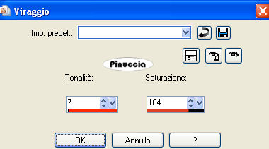 50. Regola>Tonalità e saturazione>Viraggio, con i settaggi precedenti.