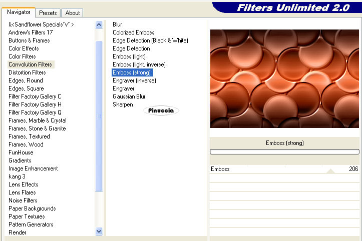 8. Effetti>Plugins>Filters Unlimited 2.0 - Convolution Filters - Emboss (strong).