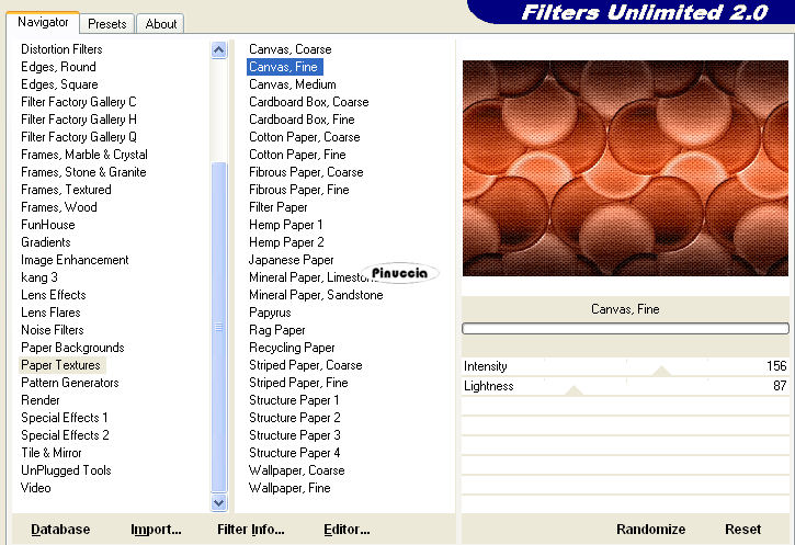 9. Effetti>Plugins>Filters Unlimited - Paper Textures - Canvas fine: