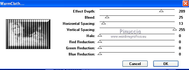 36. Effetti>Plugins>Crescent Moon - Warm cloth, con i settaggi precedenti.
