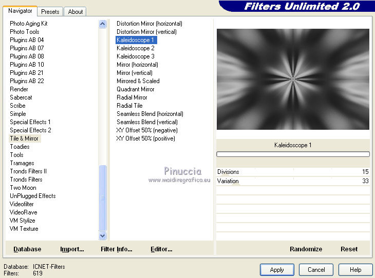 14. Effetti>Plugins>Filters Unlimite 2.0 - Tile & Mirror - Kaleidoscope 1.