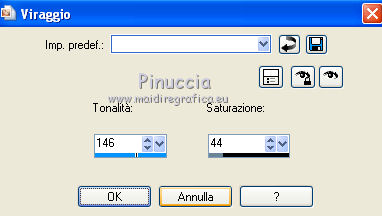 27. Regola>Tonalità e saturazione>Viraggio con i settaggi precedenti (saturazione massima 44).