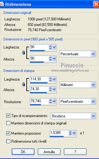 20. Immagine>Ridimensiona, al 90%, tutti i livelli non selezionato.