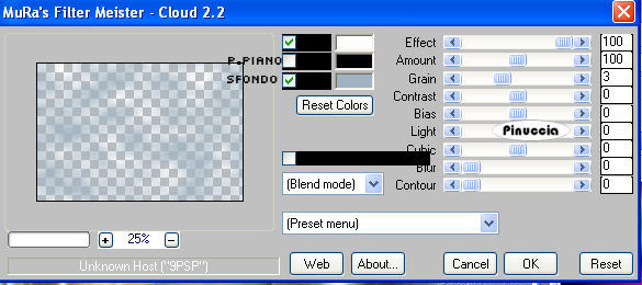 3. Effetti>Plugins>FM Tile Tools - Blend Emboss, con i settaggi standard - 2 volte.