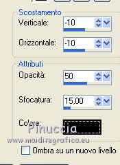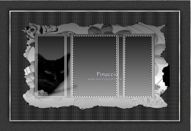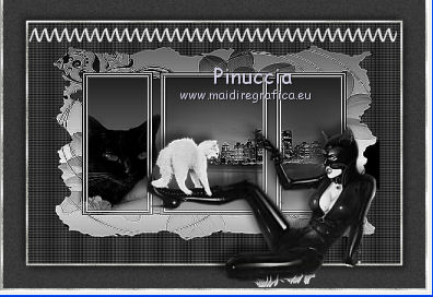 qui puoi trovare qualche risposta ai tuoi dubbi. Se l'argomento che ti interessa non è presente, ti prego di segnalarmelo. Per tradurre questo tutorial ho usato PSP X, ma può essere eseguito anche con le altre versioni di PSP. Questo tutorial è una creazione di ©Bluefay e non può essere copiato su altri siti nè essere offerto per il download. Lo stesso vale per la mia traduzione. Il materiale viene da vari gruppi di condivisione. Il copyright appartiene ai rispettivi autori. Grazie ai creatori dei tubes che mettono a disposizione il loro lavoro in vari gruppi di condivisione. Rispetta il lavoro degli autori, non cambiare il nome del file e non cancellare il watermark. Occorrente: Scrapkit di Bluefay qui Tubes qui ![]() 1. Apri una nuova immagine trasparente 650 x 450 pixels. 2. Selezione>Seleziona tutto. Apri "Paper 7" e vai a Modifica>Copia. Torna al tuo lavoro e vai a Modifica>Incolla nella selezione. Mantieni selezionato. 3. Passa il colore di primo piano a Motivi e seleziona un motivo argento. 4. Livelli>Nuovo livello raster. Riempi il livello con il tuo motivo argento.5. Selezione>Modifica>Contrai - 3 pixels. Premi sulla tastiera il tasto CANC. 6. Selezione>Modifica>Contrai - 35 pixels. Mantieni ancora selezionato. 7. Apri "Paper 6" e vai a Modifica>Copia. Torna al tuo lavoro e vai a Modifica>Incolla nella selezione. 8. Mantieni ancora selezionato. Livelli>Nuovo livello raster. Riempi con il tuo motivo argento.9. Selezione>Modifica>Contrai - 3 pixels. Premi sulla tastiera il tasto CANc. 10. Selezione>Modifica>Espandi - 3 pixels. Livelli>Unisci>Unisci giù. 11. Mantieni ancora selezionato. Effetti>Effetti 3D>Sfalsa ombra, con il colore nero. ![]() Ripeti l'Effetto Sfalsa ombra, cambiando verticale e orizzontale con -5. 12. Selezione>Modifica>Contrai - 35 pixels. Livelli>Nuovo livello raster. 13. Apri il tube "Pretty Kitty Window Rainy" e vai a Modifica>Copia. Torna al tuo lavoro e vai a Modifica>Incolla nella selezione. Selezione>Deseleziona. 14. Attiva lo strumento Bacchetta magica ![]() e seleziona la seconda e la terza cornice. ![]() 15. Livelli>Nuovo livello raster. Apri il tube "Towns 308" e vai a Modifica>Copia. Torna al tuo lavoro e vai a Modifica>Incolla nella selezione. Selezione>Deseleziona. 16. Cambia la modalità di miscelatura di questo livello in Luminanza (esistente). 17. Livelli>Unisci>Unisci giù. 18. Effetti>Effetti di bordo>Aumenta. 19. Apri il tube "Achilleoschriscatssmanon" e vai a Modifica>Copia. Torna al tuo lavoro e vai a Modifica>Incolla come nuovo livello. 20. Sposta il tube in basso a destra.21. Cambia la modalità di miscelatura di questo livello in Luminanza (Esistente). 22. Effetti>Effetti 3D>Sfalsa ombra, con il colore nero. ![]() 23. Regola>Messa a fuoco>Accentua messa a fuoco. 24. Attiva il livello Raster 2. 25. Apri l'elemento scrap "Costurinha2azul" e vai a Modifica>Copia. Torna al tuo lavoro e vai a Modifica>Incolla come nuovo livello. 26. Spostalo in alto, come nel mio esempio.![]() 27. Livelli>Duplica. Immagine>Capovolgi. 28. Aggiungi il tuo nome e/o il tuo watermark su un nuovo livello. 29. Livelli>Unisci>Unisci tutto. 30. Effetti>Effetti di illuminazione>Sprazzo di luce. ![]() Hai finito. Salva il tuo lavoro in formato jpg. ![]() Se hai problemi o dubbi, o trovi un link non funzionante, o anche soltanto per un saluto, scrivimi 9 Settembre 2010 |