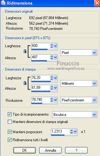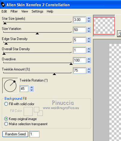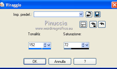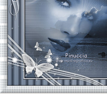 qui puoi trovare qualche risposta ai tuoi dubbi. Se l'argomento che ti interessa non è presente, ti prego di segnalarmelo. Per tradurre questo tutorial ho usato PSP X, ma può essere eseguito anche con le altre versioni di PSP. Questo tutorial è una creazione di ©Bluefay e non può essere copiato su altri siti nè essere offerto per il download. Lo stesso vale per la mia traduzione. Il materiale viene da vari gruppi di condivisione. Il copyright appartiene ai rispettivi autori. Grazie ai creatori dei tubes che mettono a disposizione il loro lavoro in vari gruppi di condivisione. Rispetta il lavoro degli autori, non cambiare il nome del file e non cancellare il watermark. Occorrente: Scrapkit di Bluefay qui Tubes qui Filtri: FM Tile Tools - Blend Emboss qui Alien Skin Xenofex 2.0 - Constellation qui Ti servirà anche Animation Shop qui ![]() 1. Apri la cornice "Bluefay Frame". Questa sarà la base del tuo lavoro. Elimina il livello del watermark. 2. Selezione>Seleziona tutto. Livelli>Nuovo livello raster. 3. Apri la carta "Bluefay Paper 3" e vai a Modifica>Copia. Torna al tuo lavoro e vai a Modifica>Incolla nella selezione. Selezione>Deseleziona. 4. Apri il tube "Raz 2006 misted before The Storm M" e vai a Modifica>Copia. Torna al tuo lavoro e vai a Modifica>Incolla come nuovo livello. (se stai usando un tuo tube Ridimensiona se e quanto necessario). 5. Regola>Tonalità e saturazione>Viraggio, con i valori corrispondenti a un colore abbinato al tuo sfondo. Il mio è un blu. ![]() 6. Effetti>Plugins>FM Tile Tools - Blend Emboss, con i settaggi standard. ![]() 7. Livelli>Unisci>Unisci giù. 8. Livelli>Disponi>Sposta giù. 9. Livelli>Unisci>Unisci tutto. 10. Apri il tube "Caro 4005" e vai a Modifica>Copia. Torna al tuo lavoro e vai a Modifica>Incolla come nuovo livello. 11. Immagine>Ridimensiona, all'80%, tutti i livelli non selezionato. ![]() 12. Sposta il tube a sinistra.![]() 13. Regola>Tonalità e saturazione>Viraggio, con i settaggi precedenti. 14. Abbassa l'opacità di questo livello al 70%. 15. Livelli>Unisci>Unisci tutto. 16. Selezione>Seleziona tutto. Selezione>Modifica>Contrai - 6 pixels. 17. Selezione>Inverti. Effetti>Effetti 3D>sfalsa ombra: ![]() Ripeti l'Effetto Sfalsa ombra, cambiando verticale e orizzontale con -3. 18. Selezione>Deseleziona. Livelli>Nuovo livello raster. 19. Livelli>Disponi>Sposta giù. 20. Immagine>Dimensione tela. ![]() 21. Selezione>Seleziona tutto. Apri la carta "Bluefay Paper 2" e vai a Modifica>Copia. Torna al tuo lavoro e vai a Modifica>Incolla nella selezione. Selezione>Deseleziona. 22. Attiva il livello Raster 1. 23. Apri il tube "bluefay schleife 1" e vai a Modifica>Copia. Torna al tuo lavoro e vai a Modifica>Incolla come nuovo livello. 24. Immagine>Ruota per gradi - 35 gradi a destra. ![]() 25. Sposta il tube in basso a sinistra.![]() 26. Livelli>Duplica. Immagine>Rifletti. Immagine>Capovolgi. 27. Livelli>Unisci>Unisci giù. 28. Effetti>Effetti 3D>Sfalsa ombra: ![]() 29. Effetti>Effetti di bordo>Aumenta. 30. Immagine>Aggiungi bordatura, 1 pixel, simmetriche, con il colore bianco. ![]() 31. Immagine>Aggiungi bordatura, 30 pixels, simmetriche, con il colore nero. ![]() 32. Attiva lo strumento Bacchetta magica ![]() e seleziona il bordo nero. 33. Apri la carta "Bluefay Paper 1" e vai a Modifica>Copia. Torna al tuo lavoro e vai a Modifica>Incolla nella selezione. Mantieni selezionato. 34. Effetti>Effetti 3D>Smusso a incasso. ![]() 35. Selezione>Inverti. Effetti>Effetti 3D>Ritaglio. ![]() 36. Ripeti l'Effetto Sfalsa ombra, cambiando verticale e orizzontale con -2. 37. Selezione>Deseleziona. 38. Apri l'elemento scrap "bluefay Flowerdeco" e vai a Modifica>Copia. Torna al tuo lavoro e vai a Modifica>Incolla come nuovo livello. 39. Spostalo in alto a destra.![]() 40. Regola>Messa a fuoco>Metti a fuoco. 41. Effetti>Effetti 3D>Sfalsa ombra. ![]() 42. Apri l'elemento scrap "bluefay decoelement" e vai a Modifica>Copia. Torna al tuo lavoro e vai a Modifica>Incolla come nuovo livello. 43. Spostalo in alto a sinistra.![]() 44. Regola>Messa a fuoco>Metti a fuoco. 45. Livelli>Duplica. Immagine>Rifletti. Immagine>Capovolgi. 46. Apri l'elemento scrap "bluefay Butterflies" e vai a Modifica>Copia. Torna al tuo lavoro e vai a Modifica>Incolla come nuovo livello. Spostalo in basso a sinistra.![]() 47. Regola>Messa a fuoco>Metti a fuoco. 48. Aggiungi il tuo nome e/o il tuo watermark su un nuovo livello. 49. Immagine>Ridimensiona, a 600 pixels di larghezza, tutti i livelli non selezionato. ![]() 50. Attiva il livello delle farfalle. 51. Effetti>Plugins>Alien Skin Xenofex 2.0 - Constellation. ![]() Modifica>Copia Unione. Apri Animation Shop e vai a Modifica>Incolla>Incolla come nuova animazione. 52. Torna in PSP. Modifica>Annulla azione Constellation. Ripeti l'Effetto Constellation cambiando soltanto Star size con 2,00. ![]() Modifica>Copia Unione. Torna in Animation Shop e vai a Modifica>Incolla>incolla dopo il fotogramma corrente. Modifica>Seleziona tutto. Animazione>Proprietà fotogramma e imposta la velocità a 8. ![]() Controlla il risultato cliccando su Visualizza e salva in formato gif.![]() Se hai problemi o dubbi, o trovi un link non funzionante, o anche soltanto per un saluto, scrivimi 9 Settembre 2010 |