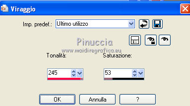 15. Regola>Tonalità e saturazione>Viraggio, con i settaggi precedenti.