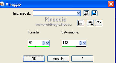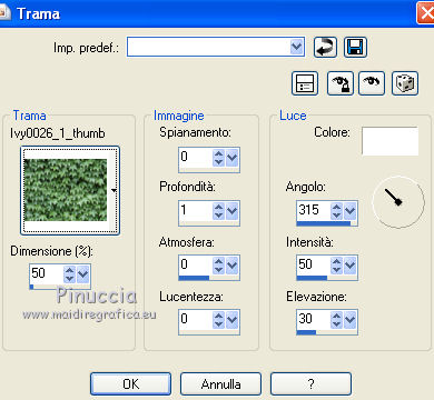 qui puoi trovare qualche risposta ai tuoi dubbi. Se l'argomento che ti interessa non è presente, ti prego di segnalarmelo. Per tradurre questo tutorial ho usato PSP X, ma può essere eseguito anche con le altre versioni di PSP. Questo tutorial è una creazione di ©Bluefay e non può essere copiato su altri siti nè essere offerto per il download. Lo stesso vale per la mia traduzione. Il materiale viene da vari gruppi di condivisione. Il copyright appartiene ai rispettivi autori. Grazie ai creatori dei tubes che mettono a disposizione il loro lavoro in vari gruppi di condivisione. Rispetta il lavoro degli autori, non cambiare il nome del file e non cancellare il watermark. Occorrente: Materiale qui Filtri: FM Tile Tools - Blend Emboss qui Ti servirà anche Animation Shop qui ![]() Metti la trama nella cartella Trame e apri il resto del materiale in PSP. 1. Apri l'immagine "Bluefay Forest bild". Questa sarà la base del tuo lavoro. 2. Scegli dall'immagine due colori, e imposta il colore di primo piano con il colore chiaro (il mio #36b534), e il colore di sfondo con il colore scuro (il mio #044404). 3. Livelli>Nuovo livello raster. Riempi il livello con il colore scuro di sfondo (tasto destro del mouse.4. Effetti>Effetti di trama>Trama - seleziona la trama Yvy0026 con i seguenti settaggi. ![]() 5. Livelli>Disponi>Sposta giù. 6. Apri il tube MDS 3778 fantasy e vai a Modifica>Copia. Torna al tuo lavoro e vai a Modifica>Incolla come nuovo livello. 7. Regola>Tonalità e saturazione>Viraggio, con i valori corrispondenti al tuo colore chiaro di primo piano. ![]() 8. Effetti>Plugins>FM Tile Tools - Blend Emboss, con i settaggi standard - 2 volte. ![]() 9. Livelli>Unisci>Unisci giù. 10. Apri il tube Man015IP e vai a Modifica>Copia. Torna al tuo lavoro e vai a Modifica>Incolla come nuovo livello. 11. Sposta il tube a sinistra, come nel mio esempio.12. Regola>Tonalità e saturazione>Viraggio, con i settaggi precedenti. 13. Livelli>Unisci>Unisci giù. 14. Apri il tube Tree Spirit 6 Lizztish e vai a Modifica>Copia. Torna al tuo lavoro e vai a Modifica>Incolla come nuovo livello. 15. Regola>Tonalità e saturazione>Viraggio, con i settaggi precedenti. 16. Effetti>Plugins>FM Tile Tools - Blend Emboss, con i settaggi standard. ![]() 17. Livelli>Unisci>Unisci giù. 18. Apri il tube Bluefay Gitter e vai a Modifica>Copia. Torna al tuo lavoro e vai a Modifica>Incolla come nuovo livello. 19. Apri il tube Bluefay perlen e vai a Modifica>Copia. Torna al tuo lavoro e vai a Modifica>Incolla come nuovo livello. 20. Attiva il livello superiore (il livello dell'immagine "Blufay forest bild). 21. Apri il tube SKF Half Face e vai a Modifica>Copia. Torna al tuo lavoro e vai a Modifica>Incolla come nuovo livello. Sposta il tube a destra, contro il bordo.22. Regola>Tonalità e saturazione>Viraggio, con i settaggi precedenti. 23. Effetti>Plugins>FM Tile Tools - Blend Emboss, con i settaggi standard. 24. Livelli>nuovo livello raster. 25. Selezione>Seleziona tutto. Riempi la selezione con il colore scuro di sfondo.26. Selezione>Modifica>Contrai - 2 pixels. Premi sulla tastiera il tasto CANC. 27. Riempi la selezione con il colore chiaro di primo piano.28. Selezione>Modifica>Contrai - 1 pixel. Premi sulla tastiera il tasto CANC. 29. Riempi la selezione con il colore scuro di sfondo.30. Selezione>Modifica>Contrai - 1 pixel. Premi sulla tastiera il tasto CANC. 31. Selezione>Inverti. 32. Effetti>Effetti 3D>Sfalsa ombra, con il colore nero. ![]() Ripeti l'Effetto Sfalsa ombra con il colore nero e i seguenti settaggi. ![]() 33. Selezione>Deseleziona. 34. Aggiungi il tuo nome e/o il tuo watermark su un nuovo livello. 35. Attiva il secondo livello dal basso (il livello con il tube Bluefay gitter). 36. Regola>Aggiungi/Rimuovi disturbo>Aggiungi disturbo. ![]() 30. Modifica>Copia Unione. Se stai usando PSP X2: Modifica>Copia Speciale>Copia Unione 31. Apri Animation Shop e vai a Modifica>Incolla>Incolla come nuova animazione. 32. Torna in PSP. Modifica>Annulla azione Aggiungi disturbo. Ripeti Aggiungi disturbo portando il disturbo a 50. 33. Modifica>Copia Unione. Torna in Animation Shop e vai a Modifica>Incolla>Incolla dopo il fotogramma corrente. 34. Modifica>Seleziona tutto. Animazione>Proprietà fotogramma e imposta la velocità a 8. ![]() Controlla il risultato cliccando su Visualizza e salva in formato gif.![]() Se hai problemi o dubbi, o trovi un link non funzionante, o anche soltanto per un saluto, scrivimi 20 Luglio 2010 |