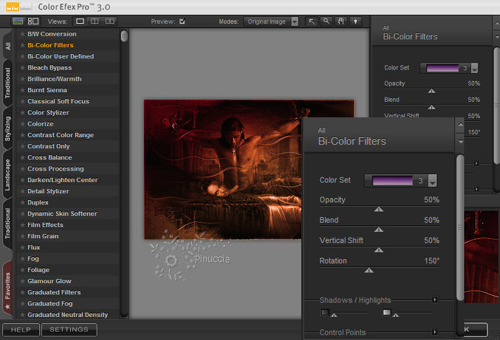 qui puoi trovare qualche risposta ai tuoi dubbi. Se l'argomento che ti interessa non è presente, ti prego di segnalarmelo. Per tradurre questo tutorial ho usato PSP X, ma può essere eseguito anche con le altre versioni di PSP. Questo tutorial è una creazione di ©Bluefay e non può essere copiato su altri siti nè essere offerto per il download. Lo stesso vale per la mia traduzione. Il materiale viene da vari gruppi di condivisione. Il copyright appartiene ai rispettivi autori. Grazie ai creatori dei tubes che mettono a disposizione il loro lavoro in vari gruppi di condivisione. Rispetta il lavoro degli autori, non cambiare il nome del file e non cancellare il watermark. Occorrente: Materiale qui Filtri: Alien Skin Xenofex 2.0 - Constellation qui Nik Software - Color Efex Pro qui Ti servirà anche Animation Shop qui ![]() 1. Scegli un colore dal tube NS_122_0809, e impostalo come colore di primo piano. Il mio #e1ae79. Imposta il colore di sfondo con il nero. 2. Apri una nuova immagine 750 x 500 pixels, e riempila con il colore nero di sfondo (tasto destro del mouse).3. Livelli>Nuovo livello raster. Selezione>Seleziona tutto. 4. Apri il tube NS 122 0809, e vai a Modifica>Copia. Torna al tuo lavoro e vai a Modifica>Incolla nella selezione. Selezione>Deseleziona. 5. Apri il tube "Grunge" e vai a Modifica>Copia. Torna al tuo lavoro e vai a Modifica>Incolla come nuovo livello. 6. Regola>Aggiungi/Rimuovi disturbo>Aggiungi disturbo. ![]() 7. Effetti>Effetti 3D>Sfalsa ombra, con il colore nero. ![]() 8. Apri il tube "DragonBlueTube0709InChains" e vai a Modifica>Copia. Torna al tuo lavoro e vai a Modifica>Incolla come nuovo livello. 9. Sposta il tube in alto a sinistra, come nel mio esempio.![]() 10. Apri il tube "Isharimal awakening" e vai a Modifica>Copia. Torna al tuo lavoro e vai a Modifica>Incolla come nuovo livello. 11. Sposta il tube in basso come nel mio esempio.![]() 12. Apri il tube "fantasy nebel" e vai a Modifica>Copia. Torna al tuo lavoro e vai a Modifica>Incolla come nuovo livello. 13. Livelli>Unisci>Unisci tutto. 14. Regola>Tonalità e saturazione>Viraggio, con i valori corrispondenti al tuo colore di primo piano. ![]() Effetti>Plugins>Nik Software - Color Efex Pro - Bi-Color Filters: scegli - a destra - un color set; il mio Violet/pink 3 con i seguenti settaggi. ![]() 15. Aggiungi il tuo nome e/o il tuo watermark su un nuovo livello. 16. Apri il tube Flower doodles e vai a Modifica>Copia. Torna al tuo lavoro e vai a Modifica>Incolla come nuovo livello. 17. Scegli un colore dalla tua immagine come colore di primo piano. e prendi nota dei valori di tonalità (H) e Saturazione (S). 18. Regola>Tonalità e Saturazione>Viraggio, e trascrivi i valori annotati nelle rispettive caselle. ![]() 19 Effetti>Plugins>Alien Skin Xenofex 2.0 - Constellation. ![]() Modifica>Copia Unione. Apri Animation Shop e vai a Modifica>Incolla>Incolla come nuova animazione. Torna in PSP. Modifica>Annulla azione Constellation. Ripeti l'Effetto Constellation cambiando soltanto il settaggio di Star Size con 3,00. ![]() Modifica>Copia Unione. Torna in Animation Shop e vai a Modifica>Incolla>Incolla dopo il fotogramma corrente. Controlla il risultato cliccando su Visualizza e salva in formato gif.![]() Se hai problemi o dubbi, o trovi un link non funzionante, o anche soltanto per un saluto, scrivimi 26 Giugno 2010 |