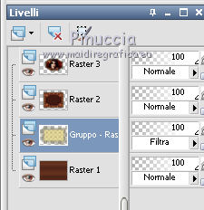 34. Cambia la modalità di miscelatura del livello Gruppo Raster 4 in Filtra.