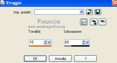 33. Regola>Tonalità e saturazione>Viraggio, con i settaggi precedenti.
