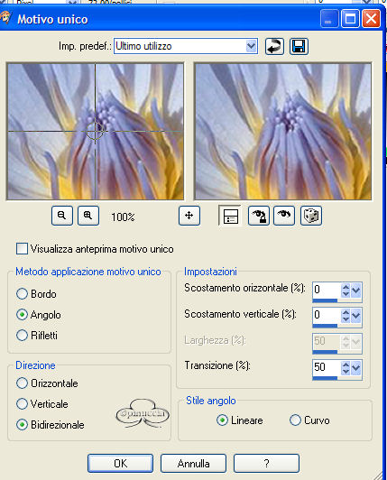 4. Effetti>Effetti di immagine>Motivo unico, con questi settaggi.