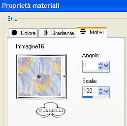 10. Nella paletta dei materiali imposta il pattern appena creato per il colore di primo piano (angolo 0, scala 100).
