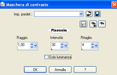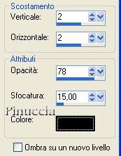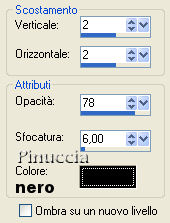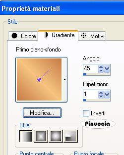 qui puoi trovare qualche risposta ai tuoi dubbi. Se l'argomento che ti interessa non è presente, ti prego di segnalarmelo. Questo tutorial è stato creato con PSP 8, ma può essere eseguito anche con le altre versioni di PSP. Questo tutorial può essere usato per creare una tag o una intestazione per una stationery. Per fare uno sfondo per una intestazione, segui i passaggi 1-5 del tutorial. Occorrente: Materiale qui Il tube della donna è di Filly Per favore, rispetta il lavoro degli autori e non cancellare il watermark dei tubes. Filtri: FM Tile Tools - Blend Emboss qui Simple qui Xero qui Mura's Seamless qui Font a scelta. 1. Apri tutti i tubes in PSP e minimizzali nella tua area di lavoro. Imposta il colore di primo piano con #C67A46, e il colore di sfondo con #F5C47F. Passa il colore di sfondo a Gradiente, con i seguenti settaggi: ![]() 2. Apri una nuova immagine trasparente 700 x 450 pixels, e riempila con il gradiente.Effetti>Effetti geometrici>Prospettiva orizzontale, con i seguenti settaggi: ![]() 3. Livelli>Duplica. Immagine>Capovolgi. Abbassa l'opacità di questo livello tra il 58 e il 62%. Livelli>Unisci>Unisci visibile. 4. Effetti>Plugins>Simple>Four Way Average. Effetti>Effetti di bordo>Aumenta. 4. Cambia i settaggi del gradiente: ![]() Livelli>Nuovo livello raster. Riempi questo livello con il gradiente,e abbassa l'opacità al 60%. Livelli>Unisci>Unisci visibile. Effetti>Effetti di immagine>Motivo unico, con i settaggi standard. ![]() 5. Effetti>Plugins>FM Tile Tools - Blend Emboss, con i settaggi standard, per due volte. ![]() 6. Effetti>Plugins>Mura's Seamless - Checks with Gradation, con i seguenti settaggi: ![]() 7. Attiva lo strumento Bacchetta magica sfumatura e tolleranza 0,![]() e seleziona i quadrati neri. Riempi i quadrati selezionati con il gradiente.Mantieni selezionato. Effetti>Effetti 3D>Sfalsa ombra, con i seguenti settaggi, colore nero: ![]() 8. I quadrati dovrebbero essere ancora selezionati. Effetti>Plugins>Mura's Seamless - Checks with Gradation, con i seguenti settaggi: rispetto ai settaggi precedenti cambiano i valori X e Y: ![]() Regola>Messa a fuoco>Maschera di contrasto: ![]() Selezione>Nessuna selezione. 9. Attiva il tube raz2005_Misted Roses, e vai a Modifica>Copia. Torna al tuo lavoro e vai a Modifica>Incolla>Incolla come nuovo livello. Sposta questo tube a sinistra.Regola>Saturazione e tonalità>Viraggio: ![]() 10. Guarda dove il fiore si sovrappone sui quadrati a cui è stato applicato il filtro Mura's Seamless (vedi la schermata sotto). Dovrai rimuovere queste parti del fiore. Attiva lo strumento Selezione , (rettangolo, modalità aggiungi, sfumatura 0), e seleziona l'area dei quadrati dove si trovano le parti da cancellare.![]() Premi sulla tastiera il tasto CANC ![]() Abbassa l'opacità di questo livello al 48%. Livelli>Duplica. Sposta questo tube sul lato destro della tag e adattalo all'interno dei quadrati colorati, vedi la schermata sotto:![]() 11. Attiva il tube della donna e vai a Modifica>Copia. Torna al tuo lavoro e vai a Modifica>Incolla>Incolla come nuovo livello. Immagine>Ridimensiona, all'80%, tutti i livelli non selezionato, ricampionamento bicubica. ![]() Sposta il tube sul lato destro della tag contro i bordi inferiore e destro dell'immagine.Regola>Saturazione e tonalità>Viraggio, con i settaggi usati al punto 9. Facoltativo: Effetti>Plugins>Xero - Porcelain, con i settaggi standard. Effetti>Effetti 3D>Sfalsa ombra, con i settaggi usati al punto 6, tranne la sfocatura a 15: ![]() 12. Attiva il tube Cherswitz-accents. Assicurati di essere posizionato sul livello centrale e vai a Modifica>Copia. Torna al tuo lavoro e vai a Modifica>Incolla>Incolla come nuovo livello. Immagine>Ridimensiona, per due volte all'85%, tutti i livelli non selezionato, bicubica. Regola>Messa a fuoco>Accentua messa a fuoco. Effetti>Effetti 3D>Sfalsa ombra, con i settaggi usati al punto 11, ma con la sfocatura a 2. ![]() Regola>Messa a fuoco>Metti a fuoco. Livelli>Disponi>Sposta giù. Posiziona il tube dietro la testa della donna (vedi l'esempio finale).13. Attiva il tube MTM-bloemen e vai a Modifica>copia. Torna al tuo lavoro e vai a Modifica>Incolla>Incolla come nuovo livello. Immagine>Ridimensiona, al 60%, tutti i livelli non selezionato, bicubica. Regola>Saturazione e tonalità>Viraggio, con i seguenti settaggi. ![]() 14. Effetti>Effetti 3D>Sfalsa ombra, con i settaggi precedenti, ma con la sfocatura a 11. ![]() Posiziona questo tube in basso a sinistra (vedi l'esempio finale).Attiva il tube Butterfly accents. Attiva il livello Layer 2 e vai a Modifica>copia. Torna al tuo lavoro e vai a Modifica>Incolla>Incolla come nuovo livello. Immagine>Ridimensiona, al 25%, tutti i livelli non selezionato, bicubica. Immagine>Ruota>ruota per gradi, 25 gradi a sinistra. ![]() 15. Effetti>Effetti 3D>Sfalsa ombra, con i seguenti settaggi, colore nero: ![]() Regola>Messa a fuoco>Metti a fuoco. 16. Posiziona questo tube a sinistra del quadrato centrale (vedi il mio esempio finale).Livelli>Duplica. Immagine>rifletti. Sposta questo tube nel quadrato in alto a destra.Livelli>Duplica, e sposta questo tube nel quadrato inferiore a sinistra.17. Livelli>Unisci>Unisci tutto (appiattisci). Immagine>Aggiungi bordatura, 2 pixels, simmetriche, con il colore #69411A. Aggiungi il tuo nome e posizionalo vicino alla farfalla nel quadrato centrale, a destra. Ridimensiona, se necessario, e salva nel formato che preferisci. ![]() Se hai problemi o dubbi, o trovi un link non funzionante, o anche soltanto per un saluto, scrivimi 28 Dicembre 2007 |