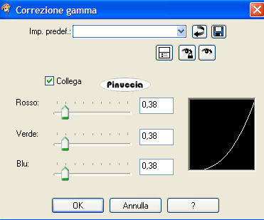 Regola>Luminosità e contrasto>Correzione Gamma, con i seguenti settaggi: