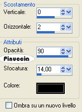 Effetti>Effetti 3D>Sfalsa ombra, con i seguenti settaggi, colore nero.