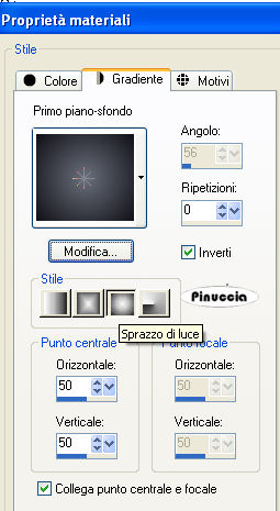 Passa il colore di primo piano a Gradiente di primo piano/sfondo, stile sprazzo di luce, con i seguenti settaggi: