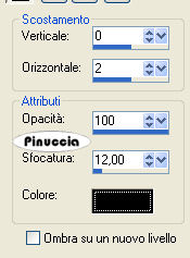 3. Effetti>Effetti 3D>Sfalsa ombra, con i seguenti settaggi, colore nero.