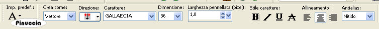 font Gallaecia, dimensione 36, crea come vettore, pennellata 1, antialias nitido,