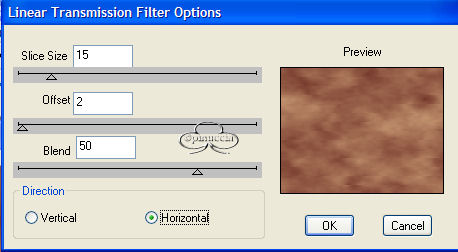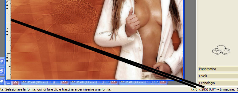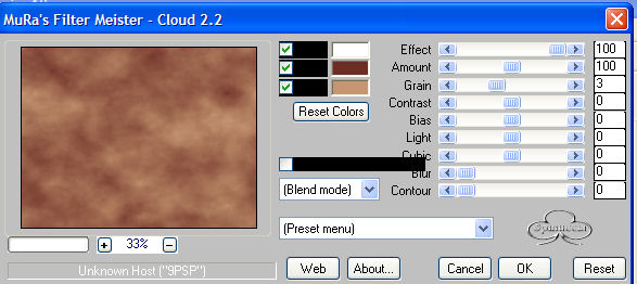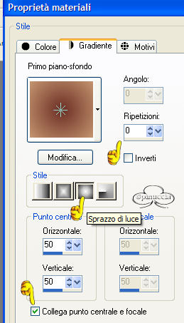qui puoi trovare qualche risposta ai tuoi dubbi. Se l'argomento che ti interessa non è presente, ti prego di segnalarmelo. Il tube della donna è di Sassy's Illusions Il tube della coppia è di Lamanouche Occorrente: DSB Flux qui Mura's Meister - Cloud qui Bordermania qui Xero - Porcelain qui Materiale qui Font a scelta. Bene, possiamo partire 1. Apri i tuoi tubes e le maschere in PSP; per il momento minimizzale nella tua area di lavoro. Imposta il colore di sfondo con #C59671 e il colore di primo piano con #6C2E24. Passa il colore di primo piano a Gradiente, con i seguenti settaggi: ![]() 2. Apri una nuova immagine trasparente 650 x 500 pixels. Riempi la nuova immagine con il gradiente.Livelli>Nuovo livello raster. Riempi questo livello con il colore di sfondo.3. Livelli>Nuovo livello maschera>Da immagine. Seleziona la maschera Ivy_maskfloral15 dal menu a tendina sotto la finestra di origine: luminanza di origine è selezionato; inverti i dati della maschera non è selezionato ![]() 4. Livelli>Unisci>Unisci gruppo. Effetti>Effetti di bordo>Aumenta. Nella paletta dei colori passa da gradiente a colore di primo piano. Livelli>Nuovo livello raster. Riempi questo livello con il colore di primo piano.Nuovo livello maschera>Da immagine. Seleziona la maschera BDMask13 dal menu a tendina sotto la finestra di origine. Luminanza di origine è selezionato; inverti i dati della maschera non è selezionato. ![]() 5. Livelli>Unisci>Unisci gruppo. Effetti>Effetti di bordo>Aumenta. Nella paletta dei livelli cambia la modalità di miscelatura di questo livello maschera in Moltiplica. Livelli>Nuovo livello raster. Effetti>Plugins/Mura's Meister/Cloud, con i seguenti settaggi: ![]() NOTA: i colori di primo piano e di sfondo devono essere settati con i colori impostati al passo 1. 6. Effetti>Plugins>Dsb Flux / Linear Transmission, con i seguenti settaggi: ![]() Ripeti questo effetto ancora una volta. Effetti>Effetti di bordo>Aumenta. 7. Nella paletta dei livelli cambia la modalità di miscelatura di questo livello in Sovrapponi (o una modalità a tua scelta). Livelli>Unisci>Unisci visibile. 8. Apri il tube Sassyillusions_brunette e vai a Modifica>Copia; puoi chiudere questo tube. Ritorna al tuo lavoro e vai a Modifica>Incolla>Incolla come nuovo livello. Immagine>Ridimensiona, dell'85%, tutti i livelli non selezionato; ![]() Sposta il tube sul lato destro della tag (vedi tag finale).9. Effetti>Plugins>Xero / Porcelain, con i seguenti settaggi: ![]() 10. Effetti>Effetti 3D>Sfalsa ombra, con i seguenti settaggi: ![]() 11. Attiva lo strumento Forme predefinite, usando i seguenti settaggi: I colori di primo piano e di sfondo sono sempre gli stessi settati al punto 1. ![]() 12. Traccia un rettangolo per la larghezza della tag partendo dal punto 0,285 ![]() attraverso e in basso verso il punto 650,361 ![]() Questo sarà il risultato: ![]() Livelli>Converti in livello raster. Livelli>Disponi>Sposta giù. Nella paletta dei livelli cambia la modalità di miscelatura del livello rettangolo in Moltiplica e abbassa l'opacità all'82%. 13. Effetti>Effetti 3D>Sfalsa ombra, con i seguenti settaggi: ![]() Effetti>Effetti di bordo>Aumenta. Livelli>Unisci>Unisci visibile. 14. Apri il tube Powertext e vai a Modifica>Copia; puoi chiudere il tube adesso. Torna al tuo lavoro e vai a Modifica>Incolla>Incolla come nuovo livello. Sposta il tube in basso a sinistra (vedi tag finale).Nella paletta dei livelli cambia la modalità di miscelatura in Moltiplica. 15. Apri il tube Tenderness e vai a Modifica>Copia; puoi chiudere il tube adesso. Torna al tuo lavoro e vai a Modifica>Incolla>Incolla come nuovo livello. Immagine>Rifletti. Immagine>Ridimensiona, del 65%, tutti i livelli non selezionato. ![]() Sposta questo tube in alto nell'angolo sinistro della tag (vedi esempio finale).16. Adesso abbiamo bisogno di liberarci dell'area dove le mani si sovrappongono al rettangolo. Attiva lo strumento Selezione (rettangolo, sfumatura 0)e disegna una selezione intorno alla parte della mano che si estende all'interno del rettangolo. ![]() Adesso, premi sulla tastiera il tasto CANC. Selezione>Nessuna selezione. Nella paletta dei livelli cambia la modalità di miscelatura del livello del tube Tenderness in Luminanza (esistente) e abbassa l'opacità al 40%. 17. Livelli>Unisci>Unisci tutto (appiattisci). Effetti>Plugins>Bordermania / Frame #2, con i seguenti settaggi: ![]() 18. Aggiungi il testo che preferisci nel rettangolo. Livelli>Unisci>Unisci tutto (appiattisci). Ridimensiona, se necessario, e salva nel formato che preferisci. Ecco un altro esempio: ![]() E questo è il pensiero di un'amica che ringrazio di cuore. ![]() ![]() Se hai problemi o dubbi, o trovi un link non funzionante, o anche soltanto per un saluto, scrivimi. Giugno 2006 |
