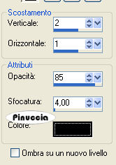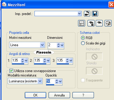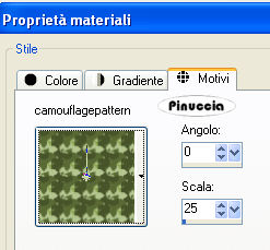 qui puoi trovare qualche risposta ai tuoi dubbi. Se l'argomento che ti interessa non è presente, ti prego di segnalarmelo. Questo tutorial è stato creato con PSP 9, ma può essere eseguito anche con le altre versioni di PSP. Occorrente: Materiale qui Il tube della donna è di Terry la maschera è di Vix. font Cargo Crate qui 1. Apri tutto il materiale in PSP e minimizzalo nella tua area di lavoro. Apri una nuova immagine BIANCA 600 x 600 pixels. 2. Apri il motivo Camouflage. Regola>Saturazione e tonalità>Viraggio, con i seguenti settaggi. ![]() 3. Modifica>Copia. Minimizza il motivo, perchè ti servirà ancora. Attiva il tuo lavoro (l'immagine bianca 600x600). Selezione>Seleziona tutto. Livelli>Nuovo livello raster. Modifica>Incolla>Incolla nella selezione. Selezione>Nessuna selezione. Livelli>Nuovo livello maschera>Da immagine. Apri il menu a tendina sotto la finestra di origine. Troverai la lista di tutti i files aperti in PSP. Seleziona la maschera Vix_Mask45, con i seguenti settaggi. ![]() 4. Livelli>Unisci>Unisci gruppo. Effetti>Effetti di bordo>Aumenta. Livelli>Nuovo livello raster. Attiva lo strumento Selezione , cerchio, sfumatura 0,e disegna un cerchio come mostrato nella schermata. ![]() Riempi la selezione con un colore preso dall'immagine,io ho usato #596a35. 5. Effetti>Effetti artistici>Mezzitoni, con i seguenti settaggi: ![]() 6. Effetti>Effetti 3D>Sfalsa ombra, con i seguenti settaggi, colore nero. ![]() Selezione>Nessuna selezione. 7. Trascina il livello del cerchio sotto il livello della maschera. ![]() Attiva il livello superiore. Attiva il tube di testo saluteourtroops_text1, e vai a Modifica>Copia. Torna al tuo lavoro e vai a Modifica>Incolla>Incolla come nuovo livello. Sposta il testo nel rettangolo a sinistra della maschera.Attiva saluteourtroops_text2, e vai a Modifica>copia. Torna al tuo lavoro e vai a Modifica>Incolla>Incolla come nuovo livello. Posiziona questo testo nel rettangolo a destra della maschera.8. Attiva il tube Terry_Support_Our_Troops, e vai a Modifica>copia. Torna al tuo lavoro e vai a Modifica>Incolla>Incolla come nuovo livello. Immagine>Ridimensiona, al 95%, tutti i livelli non selezionato, ricampionamento bicubica. ![]() Posiziona il tube come nell'esempio finale.Effetti>Effetti 3D>Sfalsa ombra, con i seguenti settaggi, colore nero. ![]() 9. Immagine>Dimensione tela, lascia la larghezza a 600 pixels, ma cambia l'altezza a 660 pixels. Clicca sulla freccia centrale della riga superiore, ![]() 10. E' il momento di aggiungere il tuo nome alla tag. Imposta il colore di primo piano con #B5C78F, Imposta il colore di sfondo su Motivi. Apri il menu e troverai il Motivo Camouflage che hai minimizzato all'inizio del tutorial. Selezionalo con i seguenti settaggi: ![]() ![]() 11. Ecco i settaggi usati per il mio testo. Font Cargo Crate, dimensione 60 pixels, bold, vettore, pennellata 2, antialias. 12. Scrivi il tuo nome e Applica. Posiziona il testo come mostrato nell'esempio finale o dove preferisci. Livelli>Converti in livello raster. Effetti>Effetti 3D>Sfalsa ombra, con i seguenti settaggi, colore nero. ![]() Livelli>Unisci>Unisci tutto (appiattisci). Ritaglia lo spazio bianco in eccesso, ridimensiona se necessario, e salva nel formato che preferisci.![]() Se hai problemi o dubbi, o trovi un link non funzionante, o anche soltanto per un saluto, scrivimi 1 Gennaio 2008 |