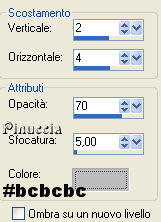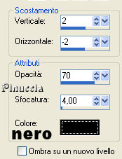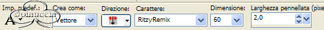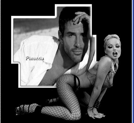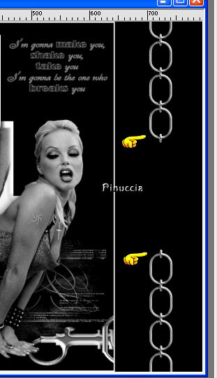 qui puoi trovare qualche risposta ai tuoi dubbi. Se l'argomento che ti interessa non è presente, ti prego di segnalarmelo. Il tube della donna è di Sassy Illusions l'immagine dell'uomo è di ManPaper.com Il testo "Sinful" è stato creato usando un pennello di aRaven; il testo "Shake you" è stato creato usando un pennello di Althea. Occorrente: Chain 1 e Chain 3 http://www.dozibaer.com/eigenesweb5-scrap/Ribbon-charms/ribbonCharms-04.htm qui Le catene usate vengono dal sito di Materiale qui Font a scelta. 1. Apri tutto il materiale in psp. Shift+D per duplicare il template e il grafico, in modo che possiate salvare gli originali per un uso futuro. Minimizzali tutti nella tua area di lavoro e apri il template. Immagine>Dimensione tela: 640 x 600 pixels. Clicca nella freccia al centro e poi ok. ![]() Sposta il template in alto in modo da lasciare uno spazio in basso.2. Livelli>nuovo livello raster. Riempi questo livello con il colore nero (#000000).Livelli>Disponi>Porta sotto. Attiva il livello del template. Selezione>Seleziona tutto. Selezione>Mobile. Selezione>Immobilizza. Selezione>Modifica>Contrai, di 12 pixels. Livelli>Nuovo livello raster. 3. Apri l'immagine dell'uomo (01bw 129). Immagine>Ridimensiona, del 60%, bicubica e tutti i livelli selezionato. ![]() Modifica>Copia. Ritorna alla tua immagine con il template selezionato e vai a Modifica>Incolla>Incolla nella selezione. Selezione>Nessuna selezione. 4. Effetti>Effetti 3D>Sfalsa ombra, con i seguenti settaggi, colore nero: ![]() Regola>Messa a fuoco>Metti a fuoco. 5. Posizionato sul livello dell'immagine maschile, vai a Livelli>Unisci>Unisci giù. Apri il tube SassyIllusions_blonde53 e vai a Modifica>Copia. Torna al tuo lavoro e vai a Modifica>Incolla>Incolla come nuovo livello. Posiziona il tube come mostrato nella schermata sotto:![]() 6. Apri il file a-dozi_Gemstone_chain03 e vai a Modifica>Copia. Ritorna al tuo lavoro e vai a Modifica>Incolla>incolla come nuovo livello. Immagine>Capovolgi. Sposta la catena sotto le gambe della donnae disponi il tube in modo che sembri che la donna sia seduta sopra la catena. (Vedi l'esempio sotto). ![]() 7. Posizionati sul livello nero di sfondo. Apri il file Sinful text e vai a Modifica>Copia. Torna al tuo lavoro e vai a Modifica>Incolla come nuovo livello. Spostalo sopra le gambe della donna(vedi la tag finale come esempio). 8. Apri il tube Sinfultag_grunge e vai a Modifica>Copia. Torna al tuo lavoro e vai a Modifica>Incolla>Incolla come nuovo livello. Non devi spostarlo, perchè si troverà già nella posizione corretta. Apri il tube "Shake you text" e vai a Modifica copia. Torna al tuo lavoro e vai a Modifica>Incolla>Incolla come nuovo livello. Sposta questo tube in alto sull'angolo a destra.(vedi come esempio la tag finale). 9. Immagine>Aggiungi bordatura, 2 pixels, simmetriche, con il colore bianco (#ffffff). Immagine>Aggiungi bordatura, simmetriche non selezionato, con il colore nero (#000000) e con i seguenti settaggi: ![]() 10. Apri il file a-dozi'sgemstonechain-01 e vai a Modifica>Copia. Torna al tuo lavoro e vai a Modifica>Incolla>Incolla come nuovo livello. Immagine>Ridimensiona, del 60%, bicubica, tutti i livelli non selezionato: ![]() Immagine>Ruota>Ruota per gradi, 90 gradi a destra. ![]() 11. Posiziona la catena al centro del bordo nero sul lato destro della tag.(vedi l'esempio della tag finale). Cancella l'anellino alla fine di ogni catena, in modo che, per ogni sezione di catena, ci siano soltanto tre anellini. ![]() Per fare questo, seleziona la parte da cancellare e premi sulla tastiera il tasto CANC.![]() 12. Attiva lo strumento Testo e scrivi il tuo nome o il testo che vuoi aggiungere alla tag.Io ho usato il nero (#000000) come colore di sfondo e #BCBCBC come colore di primo piano, il font RitzyRemix, dimensione 60 (la dimensione dipende dal tuo testo), pennellata 2, e crea come vettore. ![]() 13. Una volta che hai scritto il tuo testo, clicca ok. Immagine>Ruota>Ruota per gradi, 90 gradi a destra. Posiziona il tuo testo tra le catene. Usa i nodi del vettore per adattare il testo tra le catene. Quando sei soddisfatto, vai a Livelli>converti in livello raster. Effetti>Effetti 3D>Sfalsa ombra, con i seguenti settaggi, colore #BCBCBC: ![]() 14. Livelli>Unisci>Unisci visibile. Selezione>Seleziona tutto. Livelli>Nuovo livello raster. Riempi il nuovo livello con il colore bianco (#ffffff).Selezione>Modifica>Contrai, di 2 pixels. Premi sulla tastiera il tasto canc. Selezione>Nessuna selezione. Livelli>Unisci>Unisci tutto (appiattisci). Immagine>Aggiungi bordatura, 1 pixel, simmetriche, con il colore nero (#000000). 15. Ridimensiona la tag, se necessario, e salva. ![]() Se hai problemi o dubbi, o trovi un link non funzionante, o anche soltanto per un saluto, scrivimi. Ottobre 2006 |